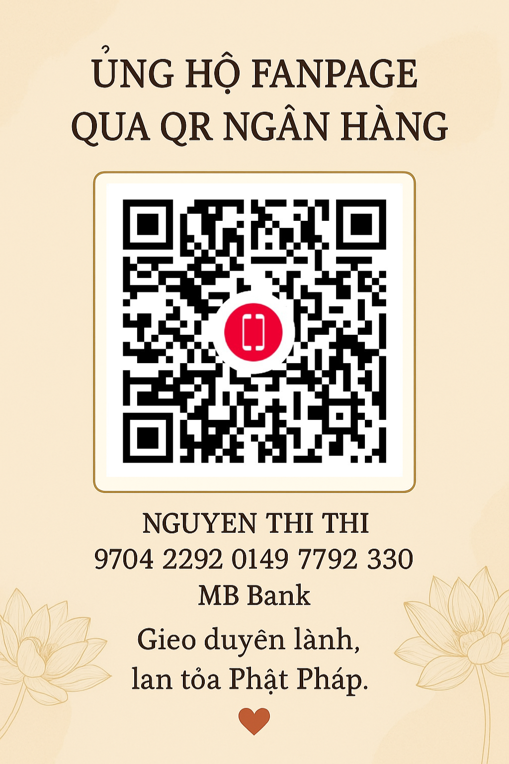 Nếu hữu duyên, quý vị có thể tùy tâm ủng hộ page qua mã QR bên dưới. Xin tri ân và chúc mọi người an lạc!